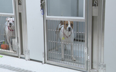 Dogs receive daily meals, clean bedding, and exercise space while they await adoption.